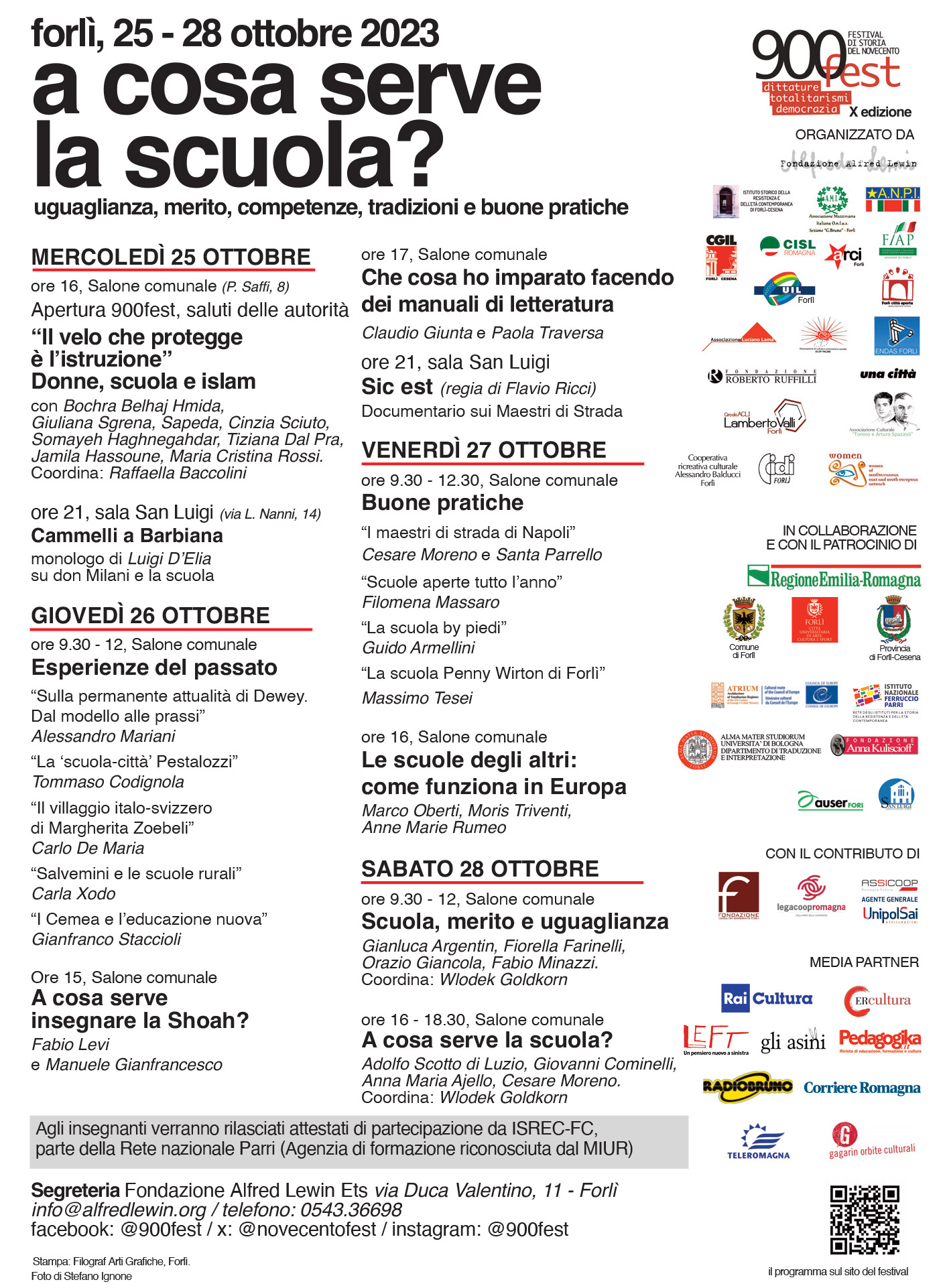 Fondazione Alfred Lewin, Istituto per la Storia della Resistenza e dell’Età Contemporanea della provincia di Forlì-Cesena, Anpi Forlì-Cesena, Associazione Mazziniana Italiana Sezione “G. Bruno” di Forlì, Ass. di cultura e promozione sociale Olof Palme, Associazione Luciano Lama, Cooperativa Ricreativo Culturale Alessandro Balducci – Forlì, Cgil Forlì-Cesena, Circolo Acli Lamberto Valli, Cisl Romagna, Uil Forlì, Arci Forlì, Endas Forlì, Rivista Una città, Associazione Culturale Tonino e Arturo Spazzoli, Fondazione Roberto Ruffilli, Fiap (Forlì), Forlì Città Aperta, ass. Women, Cidi di Forlì